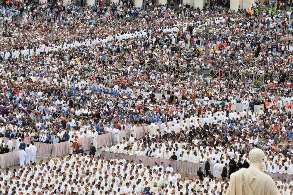 Він підкреслив, що Церква покликана бути спільнотою «живого каміння», де всі об’єднані через Хрещення в братерському сопричасті. Папа закликав до екуменізму та міжрелігійного діалогу, підкресливши важливість єднання з християнськими Церквами та іншими релігійними спільнотами.