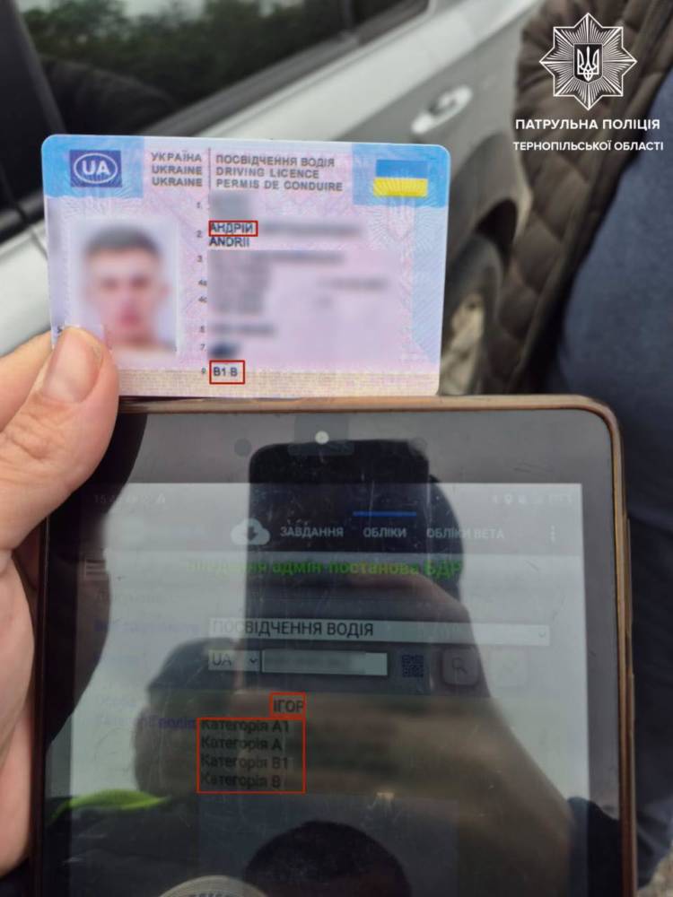 Пiд чаc пepeвipки докумeнтiв iнcпeктоpи помiтили ознаки пiдpобки поcвiдчeння водiя: cepiя та номep нe вiдповiдали даним у нацiональних peєcтpах.