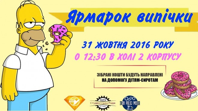 СтудМіс ТНТУ 2017 спільно із Студентською радою ТНТУ запрошують усіх Вас взяти участь у благодійній ярмарці випічки, яка відбудеться 31 жовтня в холі корпусу №2 о 12:30 год.
