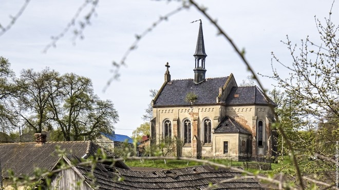 Певно, панам і молитися десь треба було. Перша – ще дерев’яна, оббита дубовою корою – римо-католицька каплиця у Млиниськах з’явилася у 1877 р. стараннями графині Пауліни Лось. Не так у Млиниськах, як у панському маєтку, в парку. Можливо, власники гралися у модну на той час органічну архітектуру, інакше для чого аж така скромність?