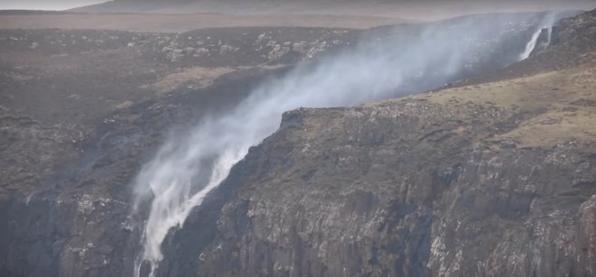 Відео, опубліковане на YouTube, показує, що водоспад Лох-Пултіел став текти знизу вгору, пишуть Відомості.