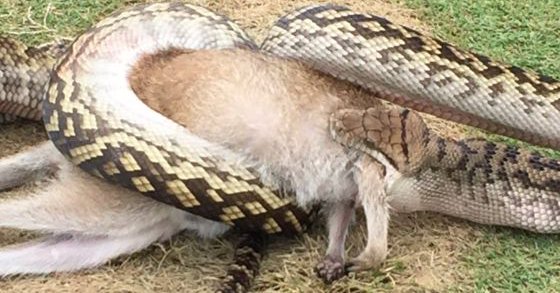 «Всі були досить здивовані. Це не таке вже звичне видовище», — розпоів один зі спортсменів. Згідно зі свідченнями очевидців, пітон розправився зі звіром протягом п’яти хвилин. Спочатку він убив кенгуру, а потім цілком його проковтнув і поповз в русло пересохлого струмка.