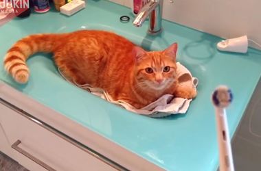 В інтернеті набирає популярності відео, де рудий кіт користується електричною зубною щіткою і радісно підставляє голову.