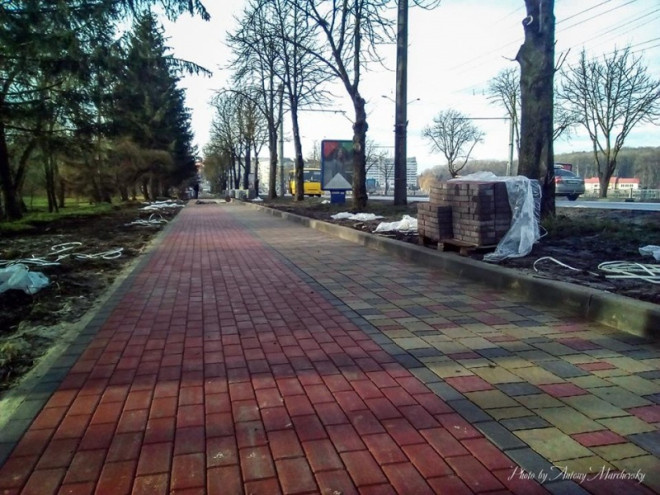 На вулиці Руській біля дамби ремонтують тротуари. Зараз там тривають роботи по облаштуванню бруківки. Також зі сторони гідропарку “Топільче” буде велосипедна доріжка.
