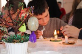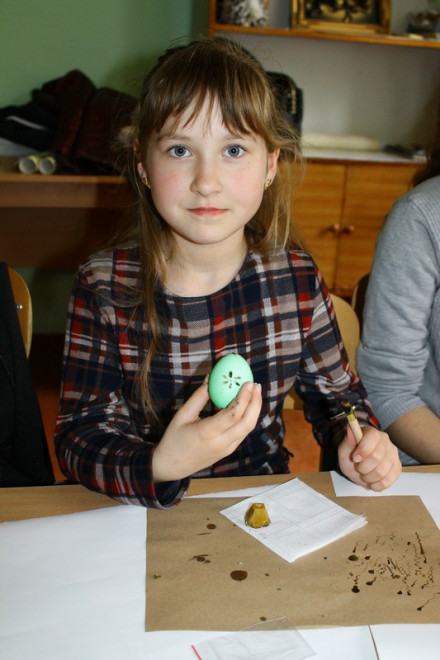 А у маленьких майстрів за кілька години клопіткої роботи виходять різнокольорові великодні обереги. Хоч змальовують зі зразків, але вкладають у візерунки свої символи. Діти обіцяють, що вони стануть частинкою їхнього великоднього кошика, а здобутим досвідом ділитимуться вдома.