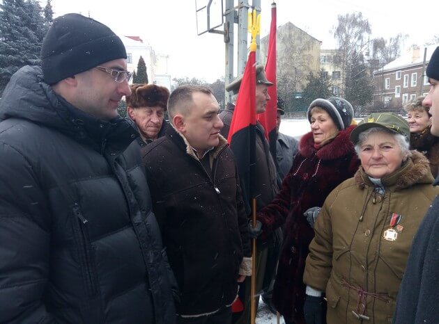 Біля підніжжя героя України виступив голова братства ОУН-УПА «Лисоня» Роман Ванчура, учасники тих буремних подій та керівник фракції ВО «Свобода» в міській раді Роман Навроцький.