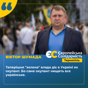 Віктор Шумада: Теперішня «зелена» влада діє в країні як окупант, бо саме окупант нищить все українське