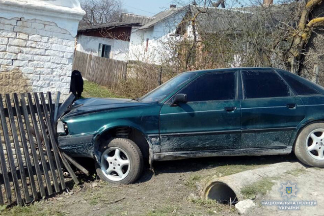 Нетверезему кермувальнику дороги було мало, тож автівка проїздила і по городах і паркан збивала, зрештою спинилася в стіні нежилого помешкання. Горе-крадій заснув за кермом. Там його і розшукали поліцейські.