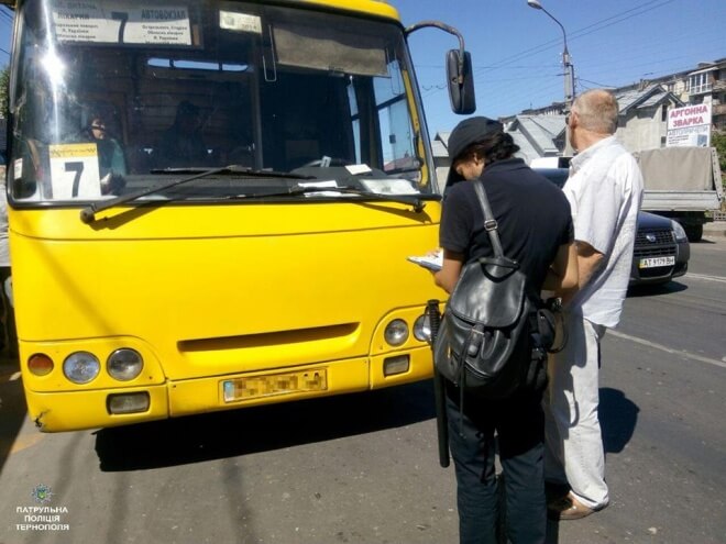 В останній день літа патрульні поліцейські у Тернополі виписали штраф водієві маршрутного таксі №7.