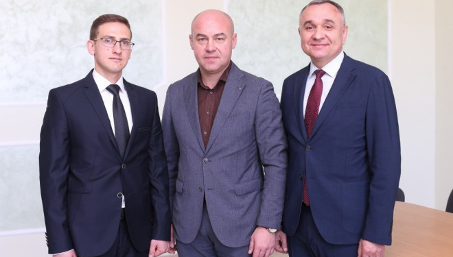 На фото: Новий керівник відділу охорони здоров’я та медичного забезпечення Тернопільської міської ради Василь Даньчак, міський голова Тернополя Сергій Надал, керівник Тернопільської міської комунальної лікарні № 2 Ростислав Левчук.
