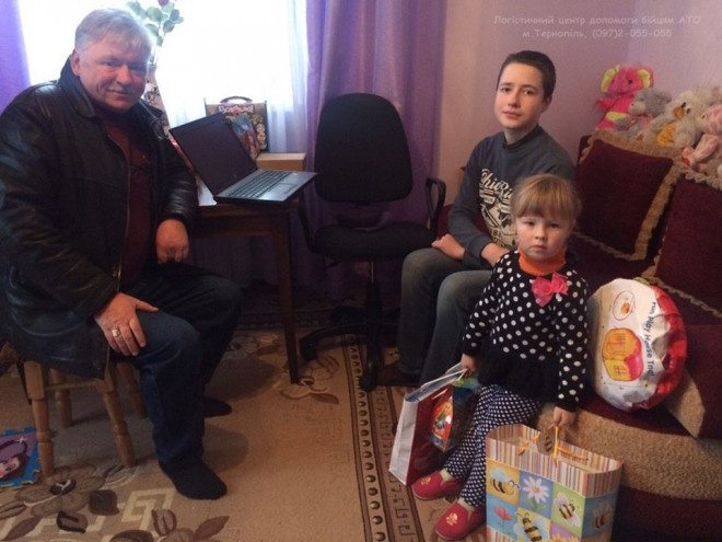 У селі Верхівці Гусятинського району залишилися дружина та двоє дітей – маленька донечка Софійка та син Миколка. На свято Миколая, яке співпало з чотирнадцятим Днем народження Миколки, до родини приїхали волонтер Логістичного центра допомоги бійцям АТО Христина Феціца та пан Петро, аби здійснити раніше озвучені дитячі мрії.