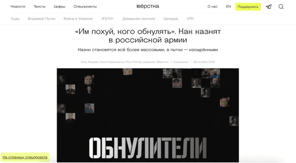 Стаття «Вёрстки» з промовистою назвою «Им похуй, кого обнулять» документує те, що самі солдати називають “внутрішньою м’ясорубкою”. Це система страху, побудована не на військовій дисципліні, а на тваринному інстинкті виживання.