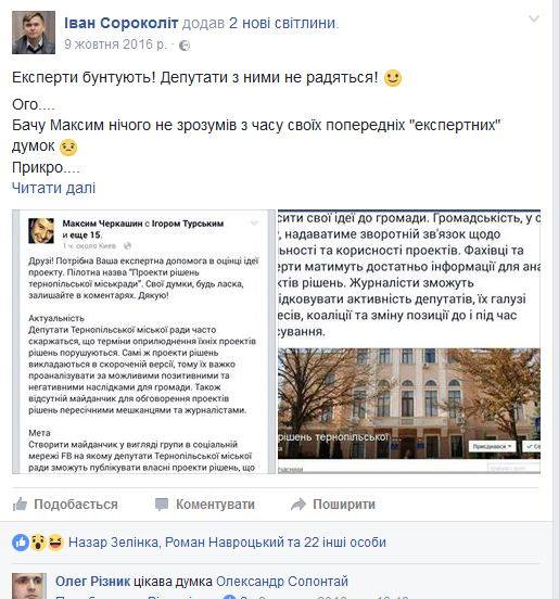 Зокрема, він навів три факти, як його ідею спочатку один тернопільський депутат назвав абсурдною, а потім сам подав такий проект рішення.