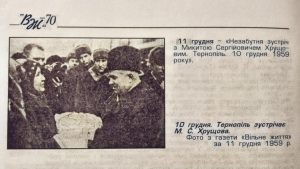 Зберегляся става вирізка з газети, де на світлині можна побачити, як у Тернополі зустрічали радянського державного діяча Микиту Хрущова.