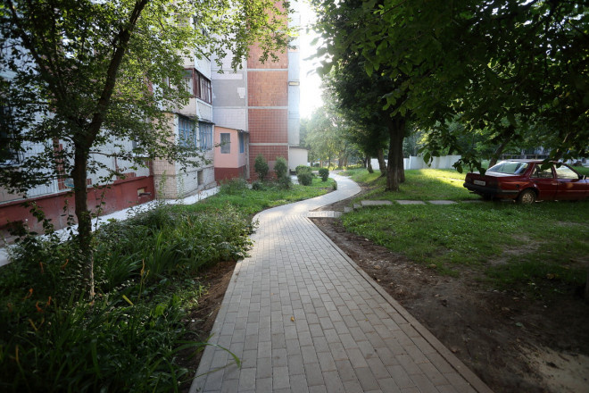 «У внутрішньому дворі розширили проїжджу частину, влаштували нове дорожнє покриття, пішохідні доріжки, а також, на прохання мешканців, розширили екопарковку. Наразі мешканці вирішують питання влаштування контейнерного майданчика», – розповідає міський голова.