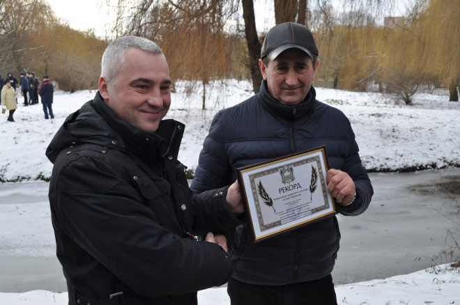 Новий рекорд з’явився у книзі рекордів Тернополя. Зокрема, у місті зафіксували наймасовіше занурення в ополонку в історії Тернополя. Відповідний серитфікат про встановлення рекорду заступник міського голови Леонід Бицюра передав керівнику тернопільського міського клубу любителів загартування і зимового плавання “Нептун” Богдану Поломацканичу.Нагадаємо, що зранку у Тернополі також почесними свідоцтвами нагородили 9-річного Наума Жильченка та-74 річного Михайла Федоровича Тихоновича. Вони стали наймолодшим та найстаршим “моржами” міста.