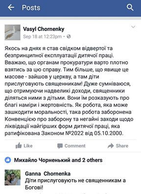 Тому мають бути вжиті негайні заходи з боку прокуратури та ліквідована найгірша форма дитячої праці.  Судячи з “лайків” ідею підтримує й екс-депутат міськради Михайло Чорненький”, – про це у фейсбук повідомляє громадський активіст Максим Черкашин.