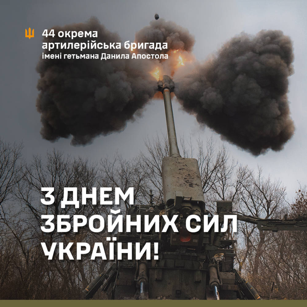 У День Збройних Сил України, ми вітаємо тих, хто продовжує справу прадідів і стоїть на захисті свободи нашої держави. Так написала 44 окрема артилерійська бригада імені гетьмана Данила Апостола у мережі.