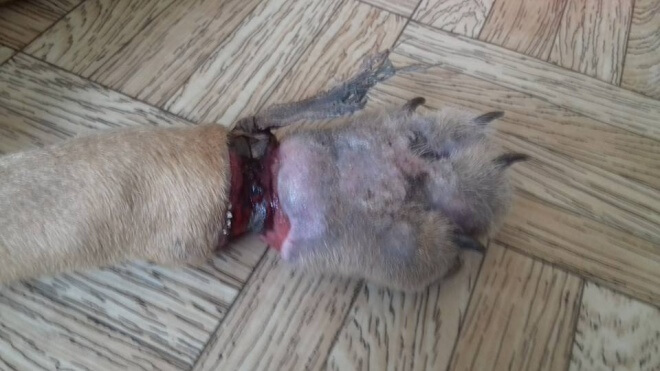 ЇЇ ЛАПУ ХТОСЬ ДУЖЕ МІЦНО ПЕРЕМОТАВ МОТУЗКОМ , І НА ВУЗЛИК.
