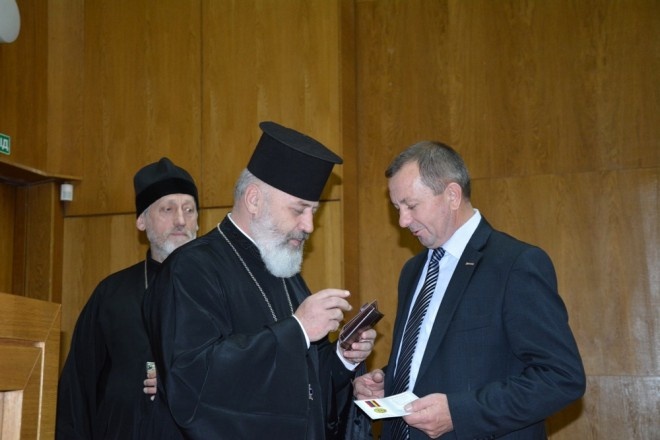 Слово також узяв настоятель Свято-Троїцького духовного центру на честь князя Данила Галицького отець Анатолій Зінкевич. Він за дорученням Патріарха Київського і всієї Руси-України Філарета вручив медалі “За жертовність і любов до України”.