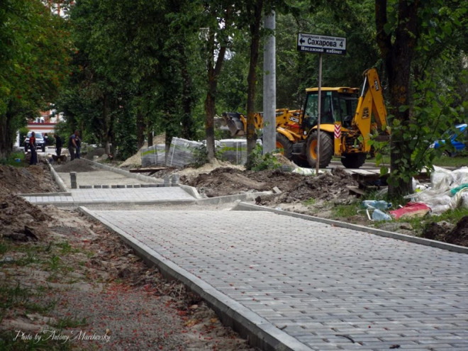 На Сахарова збудовано дощовий колектор. Як розповідає начальник відділу технагляду Олег Вітик, також поруч колектора працівниками підрядної організації проводяться роботи з влаштування нових бордюрів та мощення тротуару фігурними елементами, тож незабаром там буде влаштована нова пішохідна зона.