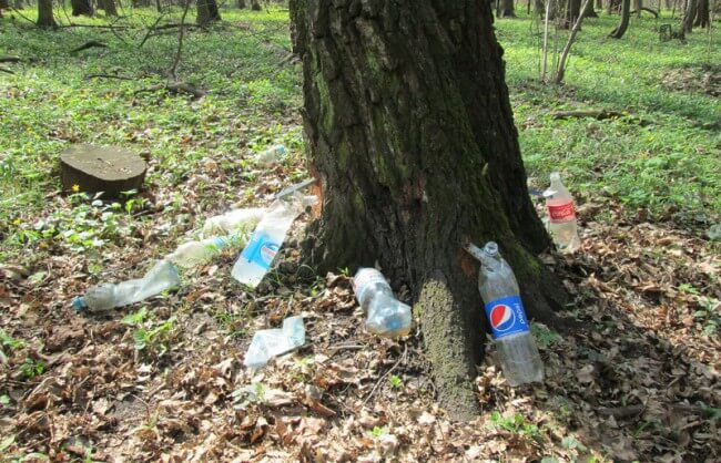 – Відпочиваючи практично впритул до лісу, – розповідає пані Оксана про обставини, за яких вони з друзями натрапили на скалічені дерева, − та ще навесні, коли усе оживає, пробуджується зі сну, розпускаються листочки, зеленіє соковита трава, щебечуть пташки, купаючись у синій блакиті неба, втішаючись сонцю і теплу, ми не могли не зайти до лісу, аби помилуватися цією красою, надихатися цілющим лісовим повітрям. Ступивши лише кілька кроків під камінну арку, яка обрамляє вхід у лісосмугу, ми були просто шоковані – куди не кинь оком, виднілися проштрикані залізяччям берези та клени, з яких витікав сік, стікаючи на землю чи у переповнені пластикові пляшки, в яких сік вже помутнів та закис, довкола роїлися мухи, приваблені запахом бродіння.