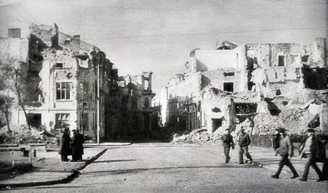 Підписані фото так: “На вулицях зруйнованого Тернополя після його визволення радянськими військами”.